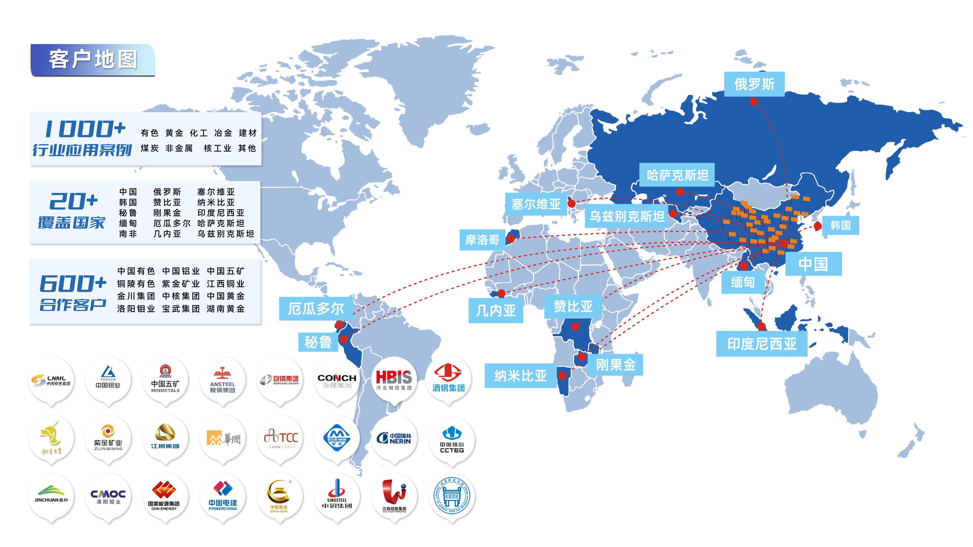 目前,jxf吉祥坊科技产品与服务覆盖全球20多个国家和地区,包括中国、韩国、印度尼西亚、哈萨克斯坦、赞比亚、纳米比亚、刚果金、南非、俄罗斯、塞尔维亚、秘鲁等矿产资源丰富的国家,逐步形成覆盖亚、非、欧、美四大洲的市场网络。